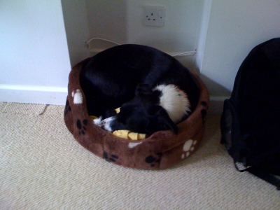 If you come into the living room and find that the small, but potentially vicious dog that your mummy and daddy have invited to come and stay has decided to steal your bed...