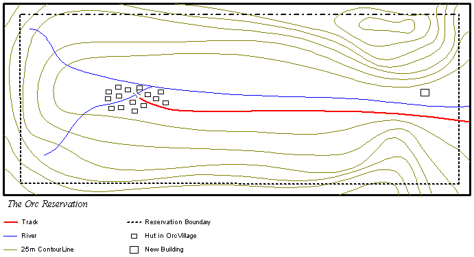Assuming That The PCs AttendOrcOutreach is based in a small office above a newsagents shop in Upper Street. The office itself consists of a number of small cluttered rooms, with various examples of Orcan art on the walls. At the back is a training room, full of PCs, at which confused young Orcs are sat attempting to master the mystery of the mouse. Astute observers will notice that the PCs appear to be toughened models, as would usually be used in a factory or other hostile environment. Jenny explains the deal: "At OrcOutreach we exist to help disadvantaged elements of the Orcan community reach their full potential. That generally involves training, advice, and legal assistance. We recently heard of an Orcan community that are experiencing difficulties that are outside our area of expertise. They live on an Orcan reservation in Caledonia, in a valley in the Highlands. They live a simple life, in touch with nature, in accordance with their ancient culture and beliefs. "But now that is being threatened. A large corporation called Bongo Mining wants to buy their reservation. They offered a sales contract, but the Orc people told them no." At this point she hands over a rather battered and torn contract. (If a PC reads it, they will see that it is indeed a contract of sale). She continues: "Then the corporation became angry. They started harassing the tribe. Recently they even burnt down one of the homes. I want to pay you to travel to the reservation, find out why the corporation wants to buy the land, and if you find a legal method to stop them, to take it. You will be paid 5,000 pounds each." (Suzy, who is paying the bills, can actually go up to 7,500 pounds each). She will give the group a little time to absorb the offer. Assuming that they are positive (there may well be a great deal of discussion, since they have very differing views on Orcs) she will add that there is an additional element to the mission. She will then introduce another woman, who was waiting outside the office. This is Suzy Peterson, of True Stories TV, a small Soho-based production company. Suzy explains who she is to the PCs: "Hi, I'm Suzy. I'm one of the founders of True Stories TV, you might have heard of us..." None of the PCs have heard of them. "...We've produced a number of critically acclaimed documentaries on a variety of subjects. Now, we want to open a window onto the whole area of adventuring. We want to follow you on this mission, filming every action. Really getting into the heart of things." Jenny, a bit worried, then adds: "But they won't get in the way, you'll hardly notice them... and besides, they are actually providing the funding." Suzy then adds that as well as the 5,000 pounds, they will also receive 500 pounds worth of goods each, chosen by them. If the PCs are agreeable, Suzy will ask them to sign a contract. She tells them that it is a totally standard contract of the kind used in docu-soaps. (If the PCs take it to a lawyer, they will be told the same thing). Assuming that the PCs are in agreement, they, Suzy, and her two dwarven assistants (Jegg and Argarth) will head off to Joe's Adventure Barn. Scene 2: ShoppingJoe's Adventure BarnJoe's Adventure Barn is a large adventurer's supplies shop, situated in an out-of-town shopping centre in Essex. The shop offers everything an adventurer might want (actually 98% of its customers are adventuring wannabees who never do anything more challenging than a weekend's camping in the woods). Suzy tells them that they can each purchase 500 pounds worth of equipment. The shop will have pretty much anything in any standard equipment lists (including magical items). The AdvertThe owner of the store, Joe, takes the PCs aside, one by one, and asks them if they would like to take part in a TV advert for his shop. He wants to film them saying why they choose to buy their supplies from Joe's Adventure Barn. He will pay them each 100 pounds. If Dan Does The AdvertIf Dan does the advert he will receive a furious phone call on his mobile in a few days time (you should do this at the most inconvenient time possible) from the CEO of his sponsors, Deathblade. The CEO, Robert Daniels, will ask him: "What the fuck do you think you are doing, doing a fucking advert for Ed's fucking Adventure Barn?" He is not in a mood for a civilised discussion. He will inform Dan that if he ever does anything like this again, he should consider his sponsorship terminated. (Robert Daniels was aware of the advert filming because Suzy phoned him up and told him. She thinks the confrontation will make good TV). Scene 3: The Orc ReservationGetting ThereSuzy will hire a small private carpet and pilot, and fly the PCs direct to the reservation, landing beside the Orc village. The LocationThe Orc reservation is located in a wide u-shaped valley. At the high end of the valley is a small village where the orcs live. At the other end is a brand new, square window-less building. Here is a map of the reservation. The VillageWhen built, the village consisted of a number of small, brick-built huts with neat tiled roofs, large glass windows, and attractively land-scaped communal gardens. Then the Orcs moved in. The bare dirt between the huts is now inhabited by a variety of wrecked horses, most of which have no legs and are popped up on bricks and, somewhat bizarrely, wrecked household furniture. The TribeThe tribe consists of around 90 Orcs, 50 adults and around 40 or so children (the Orcs aren't very good at keeping count). They are led by Tragg Bloodfist. Tragg is a fat middle-aged alcoholic of limited intelligence, whose only interest in life beyond drinking is beating his wife, something that he does with distressing regularity. He was appointed tribe leader three years ago after defeating the previous leader (in a drunken bare-knuckle brawl the day after the social security cheques arrived). When they arrive, Tragg will be outside his hut with five other male Orcs, drinking cans of extra-strong l